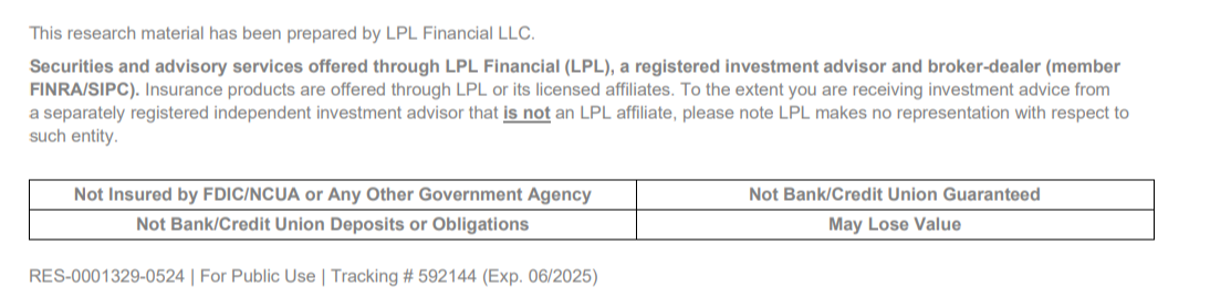 All information is believed to be from reliable sources; however, LPL Financial makes no representation as to its completeness or accuracy.